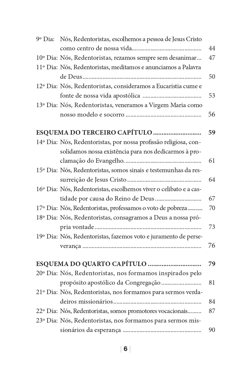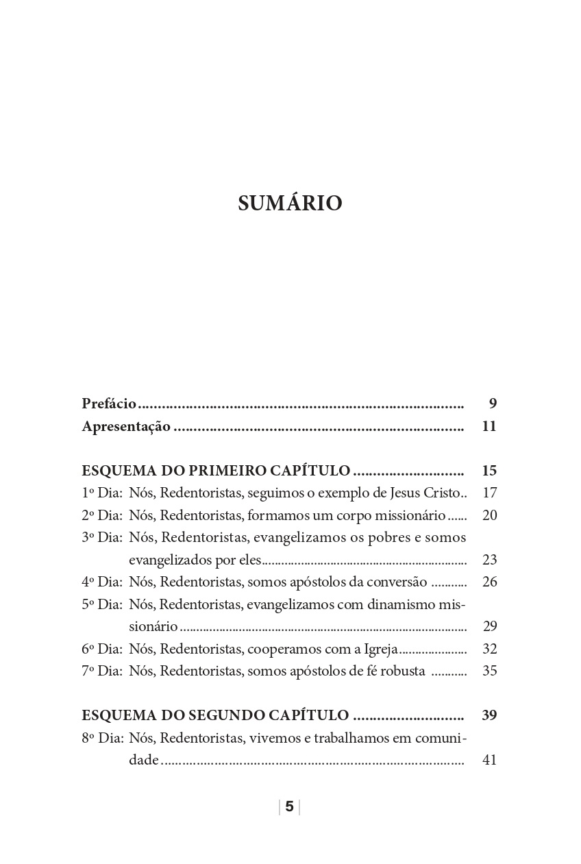 Apresentação da espiritualidade cristocêntrica dos Redentoristas presente nas Constituições e Estatutos da Congregação. Em forma de encontros de oração, propõe um caminho mensal de oração e reflexão para assumir a espiritualidade missionária e se aprofundar no conhecimento do carisma redentorista. Indicado para os membros da Congregação Redentorista, para seus formandos e, especialmente, para os leigos e leigas que compartilham da missão e da espiritualidade redentorista.